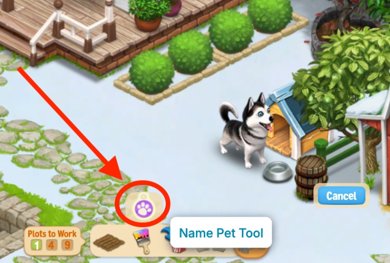 Click on the tool, then click on your pet (or your Pet’s area) to rename it, and save the new name.