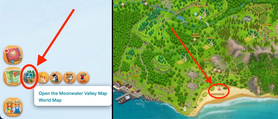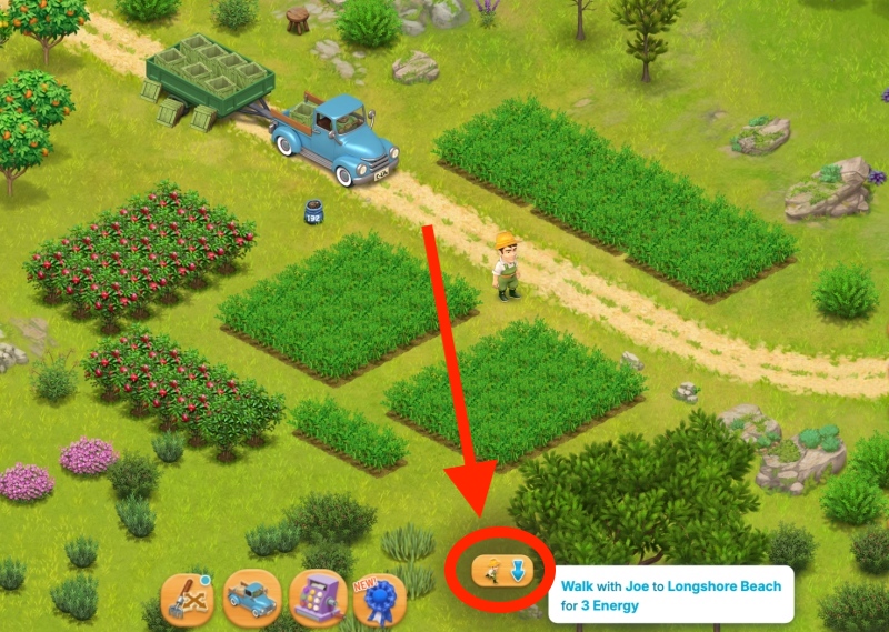 Or hover over your Map icon > open the World Map > click on Joe’s icon next to Longshore Beach and Joe will travel there.