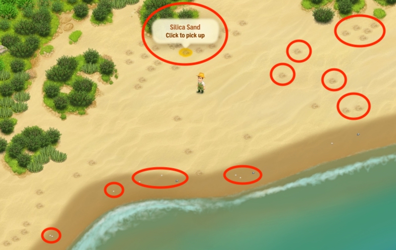 After that, you can use Joe to pick up useful things such as Silica Sand from the beach…