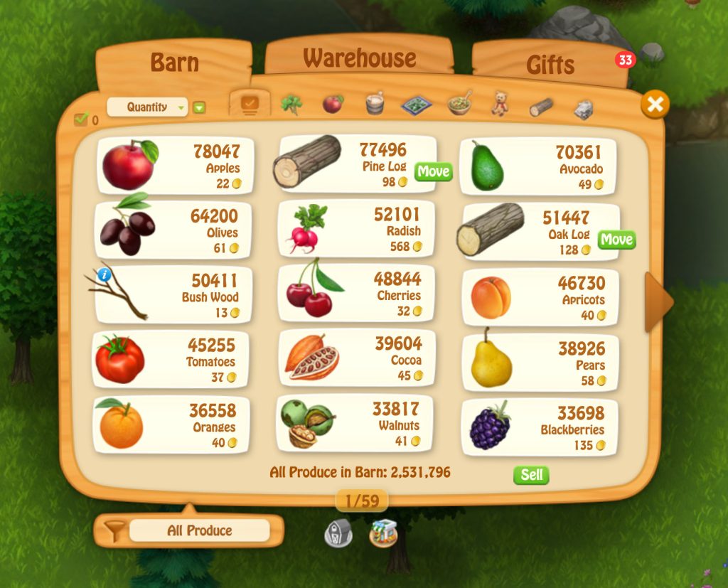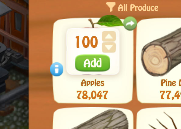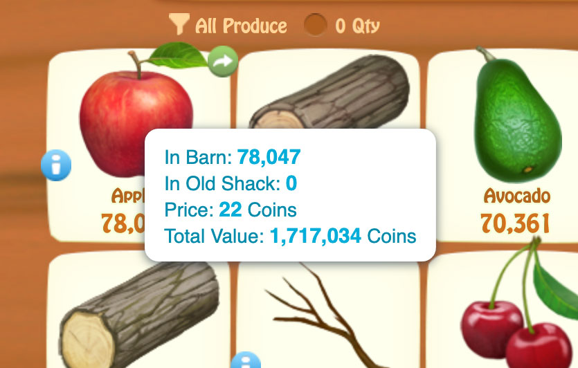 - New Quantity selector – When you’re selling with the Train, fulfilling Orders, sending items to the Truck or Joe’s Backpack, or doing other sell actions, just hover over any item in your Barn to bring up the new Quantity Selector. This lets you clearly see both: