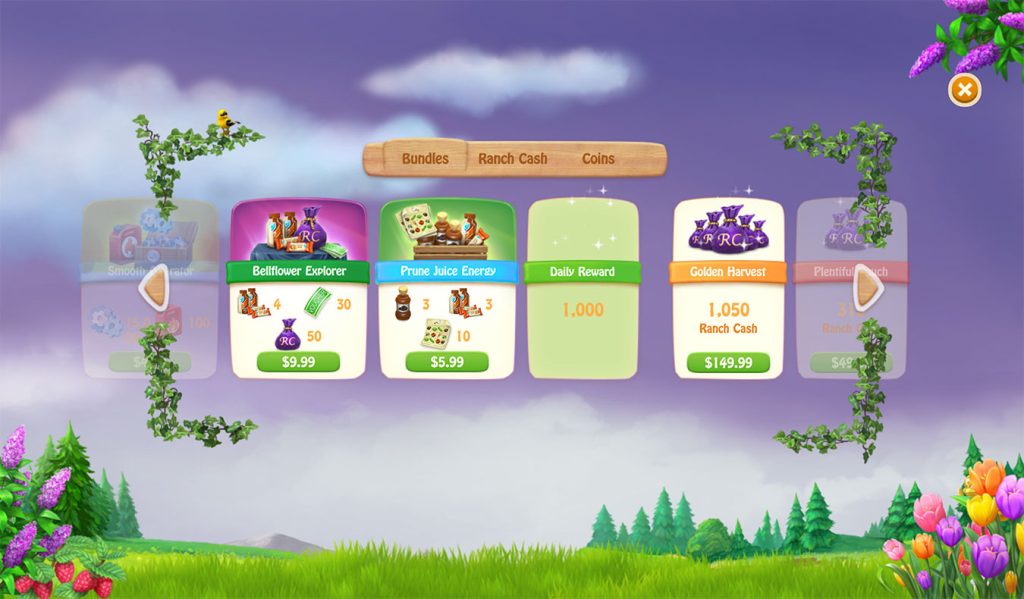 You can buy Ranch Cash, Coins, and also get a new daily gift from the all-new Purple Garden.