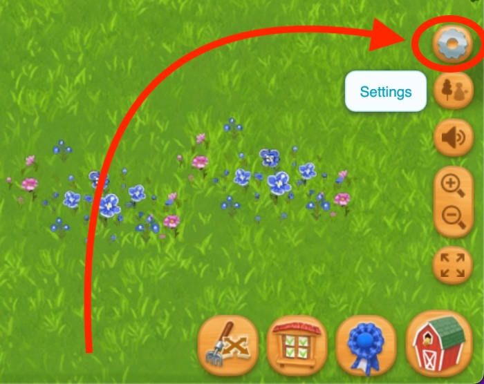 To go Settings, click the icon with a gear in the menu at the lower-right side of your game.
