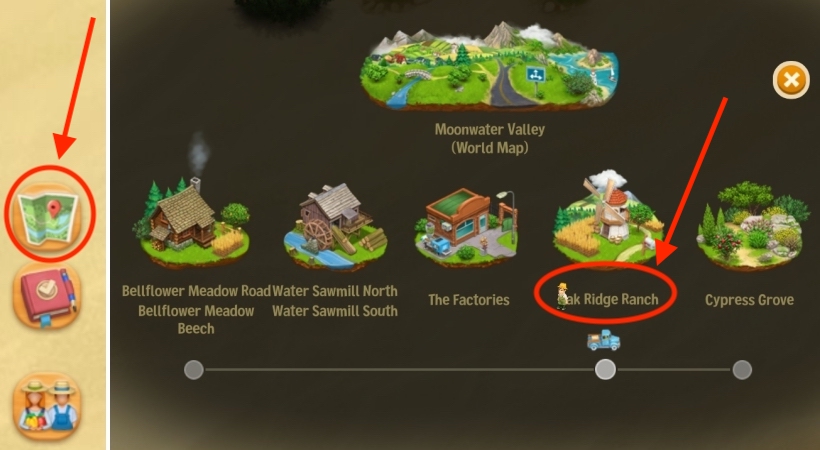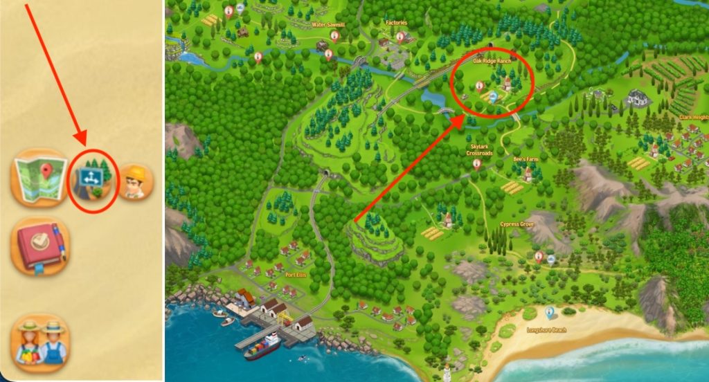 You can also open the World Map again, then click the Joe icon that is on your Farm so he travels there. Your farm’s location is circled below.